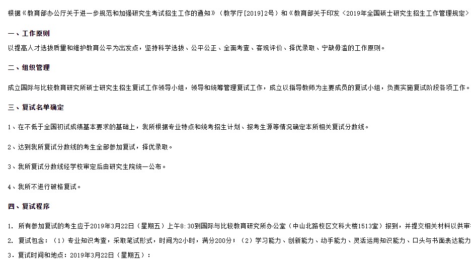 附件:国际与比较教育研究所2019年硕士研究生招生复试方案