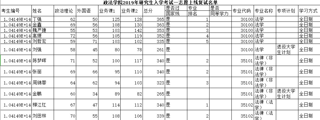 附件:政法学院2019年研究生入学考试一志愿上线复试名单