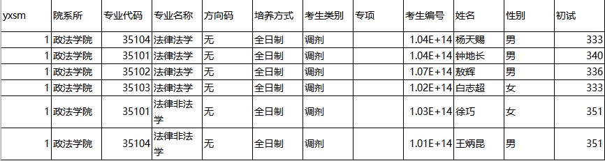 据悉,政法学院2019年硕士生复试结果汇总表法硕法学、法硕非法学(第二批)已公布,聚创江西师大考研网为您整理如下: