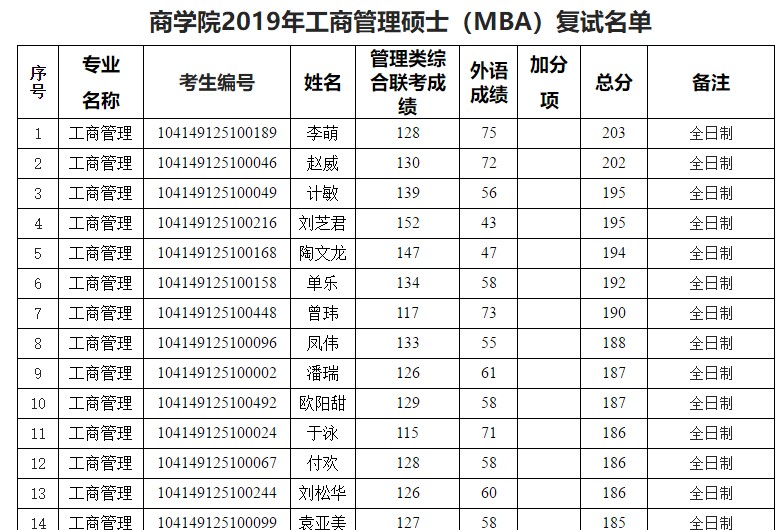 附件:商学院研招公告(8号):2019年MBA一志愿复试名单公告