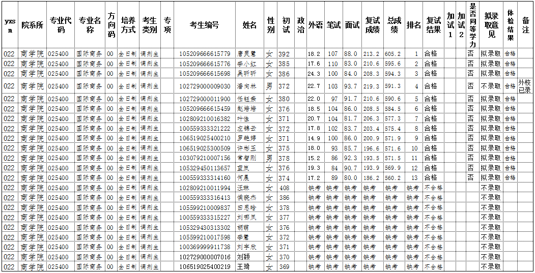 据悉,江西师范大学商学院研招公告16号2019年国际商务专业硕士(MIB)复试拟录取名单已公布,聚创江西师大考研网为您整理如下: