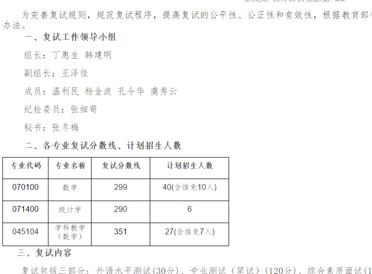 附件:数学与信息科学学院2019年硕士研究生复试录取工作办法