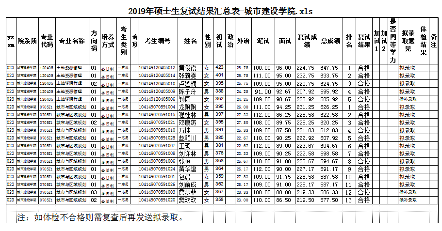 1.2019年参加城市建设学院硕士研究生入学考试复试的学生体检结果全部合格。