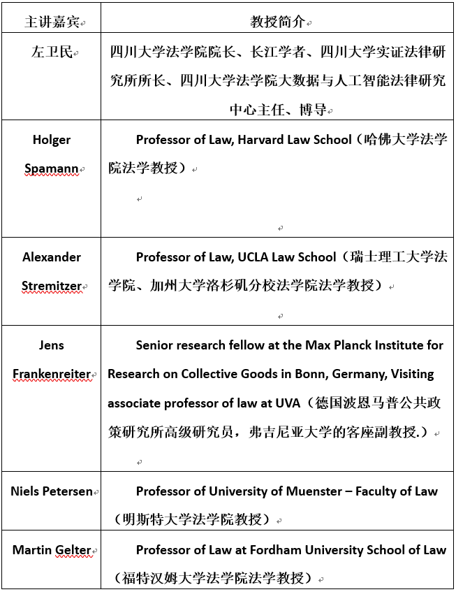 附:四川大学法学院实证法律研究夏令营主讲嘉宾信息(包括但不限于以下教授)