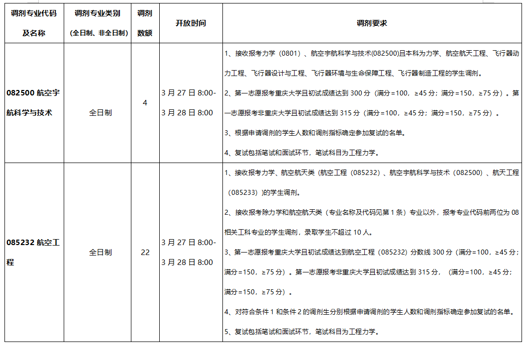 据悉,重庆大学航空航天学院2019年硕士研究生部分专业招收调剂的通知已公布,聚创重庆大学考研网为大家整理如下: