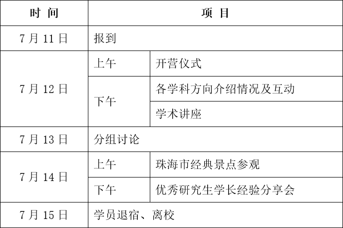 一、日程安排(如有调整,以营员报到时收到的营员手册为准):