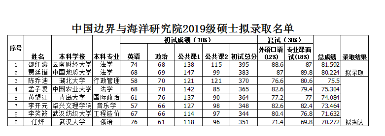 据悉,武汉大学中国边界与海洋研究院2019级硕士拟录取名单公示已公布,聚创武汉大学考研网小编为大家整理如下: