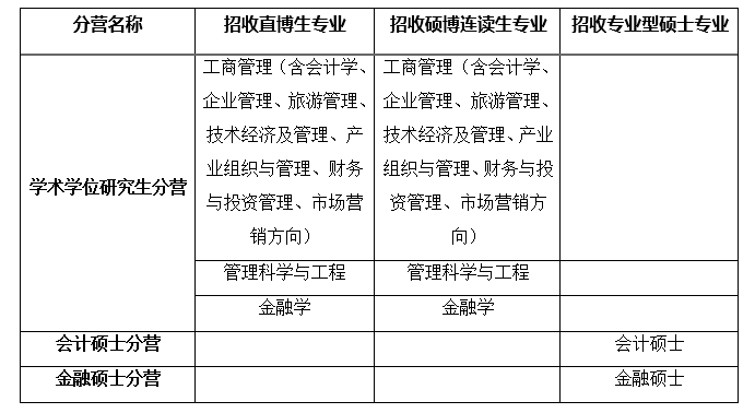 1、工商管理、管理科学与工程专业按一级学科招生和培养,金融学专业按二级学科招生和培养;