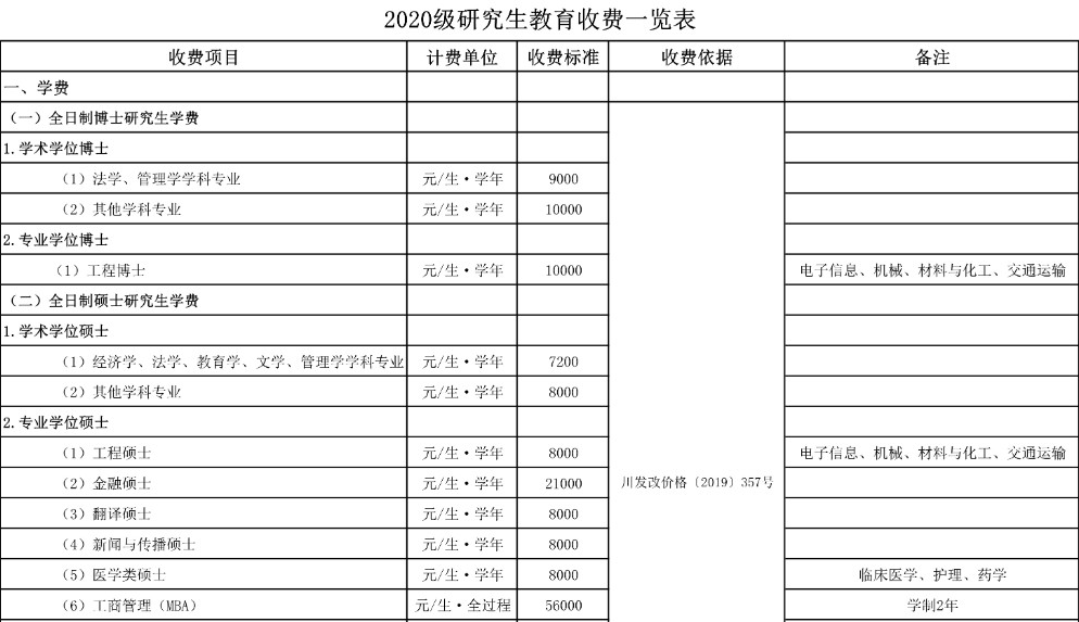 以上是聚创考研网为考生整理的"电子科技大学2020级研究生教育收费一览表"的相关考研信息,希望对大家考研备考有所帮助! 备考过程中如有疑问,也可以添加老师微信juchuang911进行咨询。