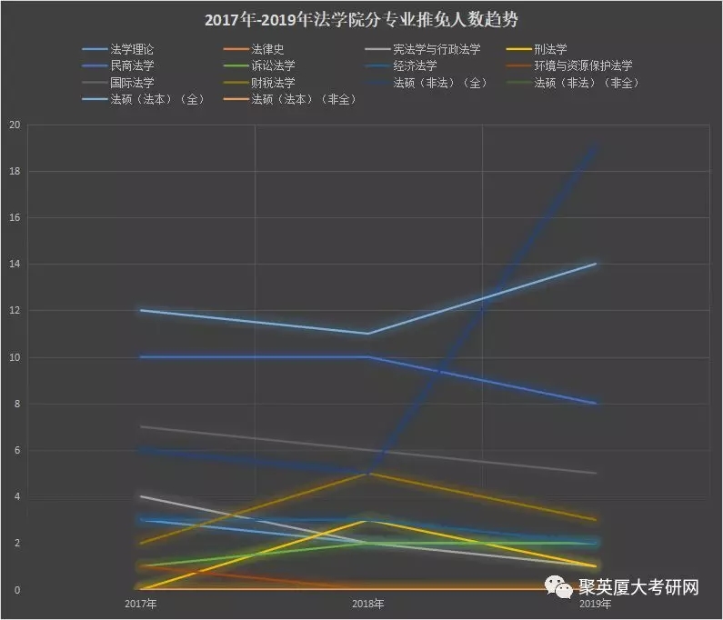 以及2017年-2019年法学院分专业推免人数趋势图如下: