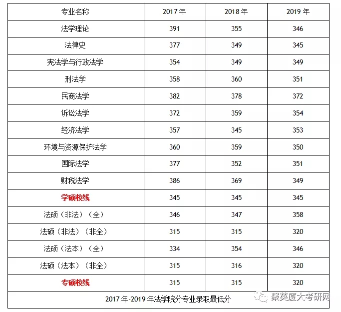 4)如果对专业本身没有要求,只想考一所名校,部分学硕专业,如法律史,是不错的选择,数据显示法律史近年的录取最低分仅略高于厦大校线、连续三年招生4人且不收推免。