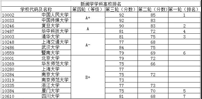 新闻传播学是研究新闻活动、传播活动及其他人类传播现象的学科。本学科以人类社会新闻与信息传播活动为对象,从不同维度研究不同形态和类型的新闻与信息传播活动与人类社会的关系,在性质上,兼跨人文学科与社会科学的学科。以下为全国高校新闻学学科排名情况: