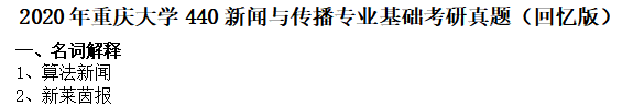 完整版请下载附件:2020年重庆大学440新闻与传播专业基础考研真题(回忆版)