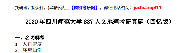 以上是聚创考研网为考生整理的"2020年四川师范大学837人文地理考研真题(回忆版)"的相关考研信息,希望对大家考研备考有所帮助! 备考过程中如有疑问,也可以添加老师微信juchuang911进行咨询。
