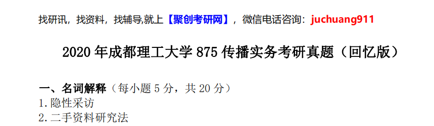 完整版请下载附件:2020年成都理工大学875传播实务考研真题(回忆版)