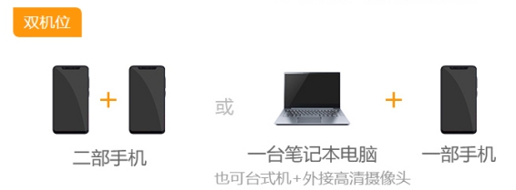 主机位为智能手机或电脑,用于面试。辅助机位(第二机位)为智能手机,用于监控面试环境。