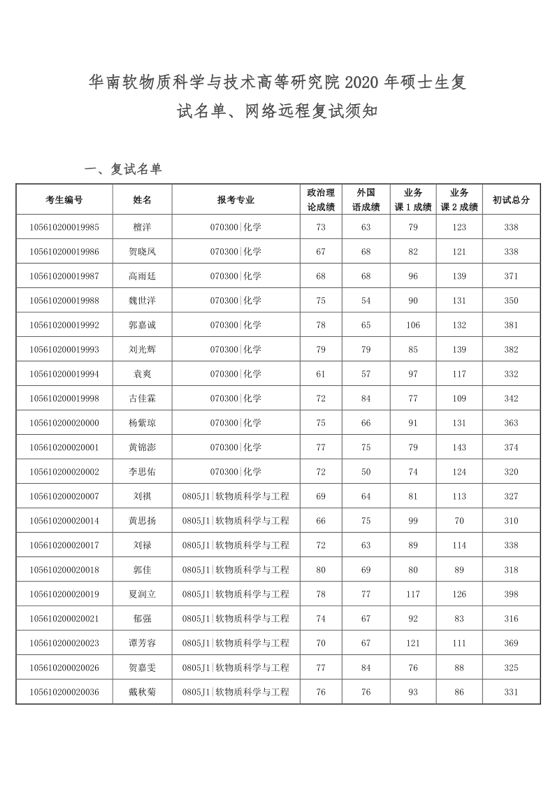 聚创华南理工大学考研网快讯,华南理工大学华南理工大学华南软物质科学与技术高等研究院2020年硕士生复试名单、网络远程复试须知,详情如下:
