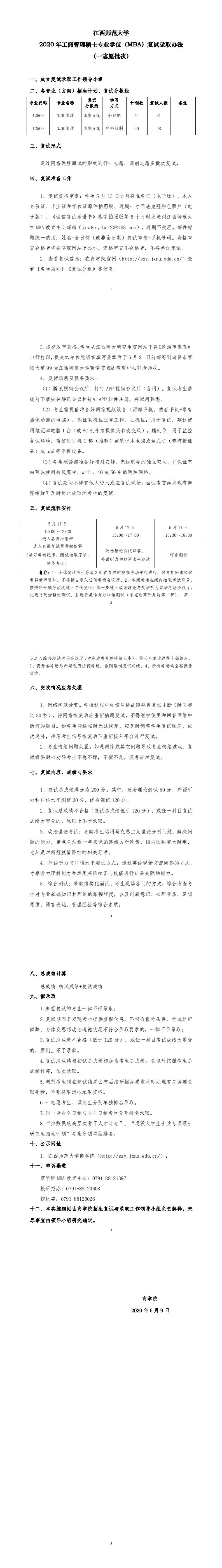 以上是聚创考研网为考生整理的"江西师范大学MBA复试公告(二)"的相关考研信息,希望对大家考研备考有所帮助! 备考过程中如有疑问,也可以添加老师微信juchuang911进行咨询。
