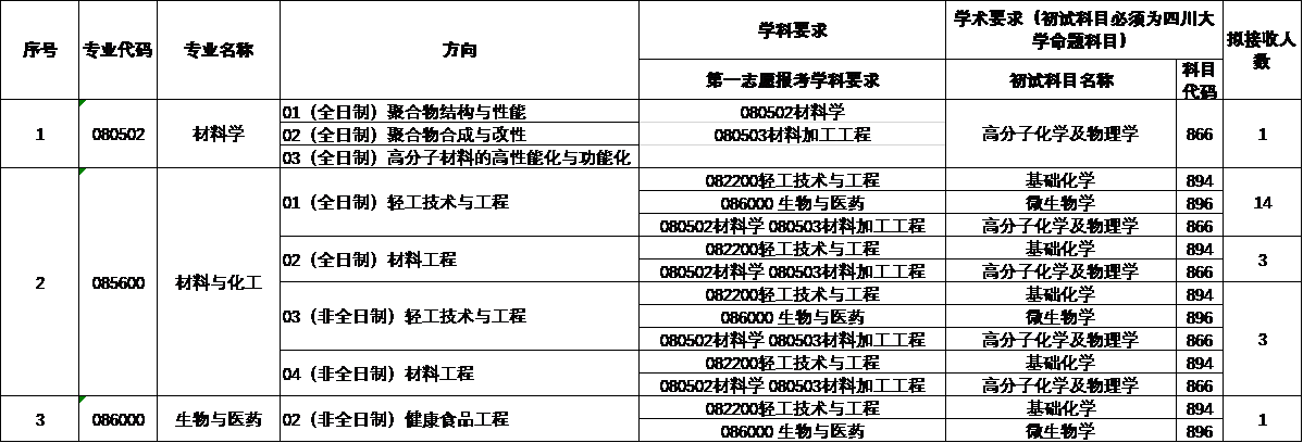 据悉,四川大学轻工科学与工程学院2020年硕士研究生调剂通知目前已公布,聚创四川大学考研网小编为大家整理如下: