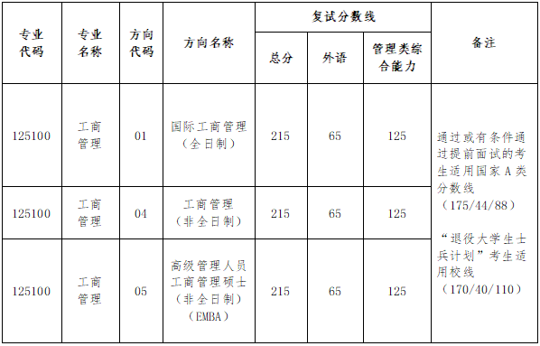 1.我院工商管理硕士(MBA)复试分数线如下: