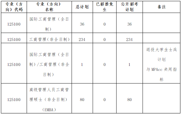 5.我院工商管理硕士拟招生人数如下,将根据情况调整,最终以实际录取人数为准: