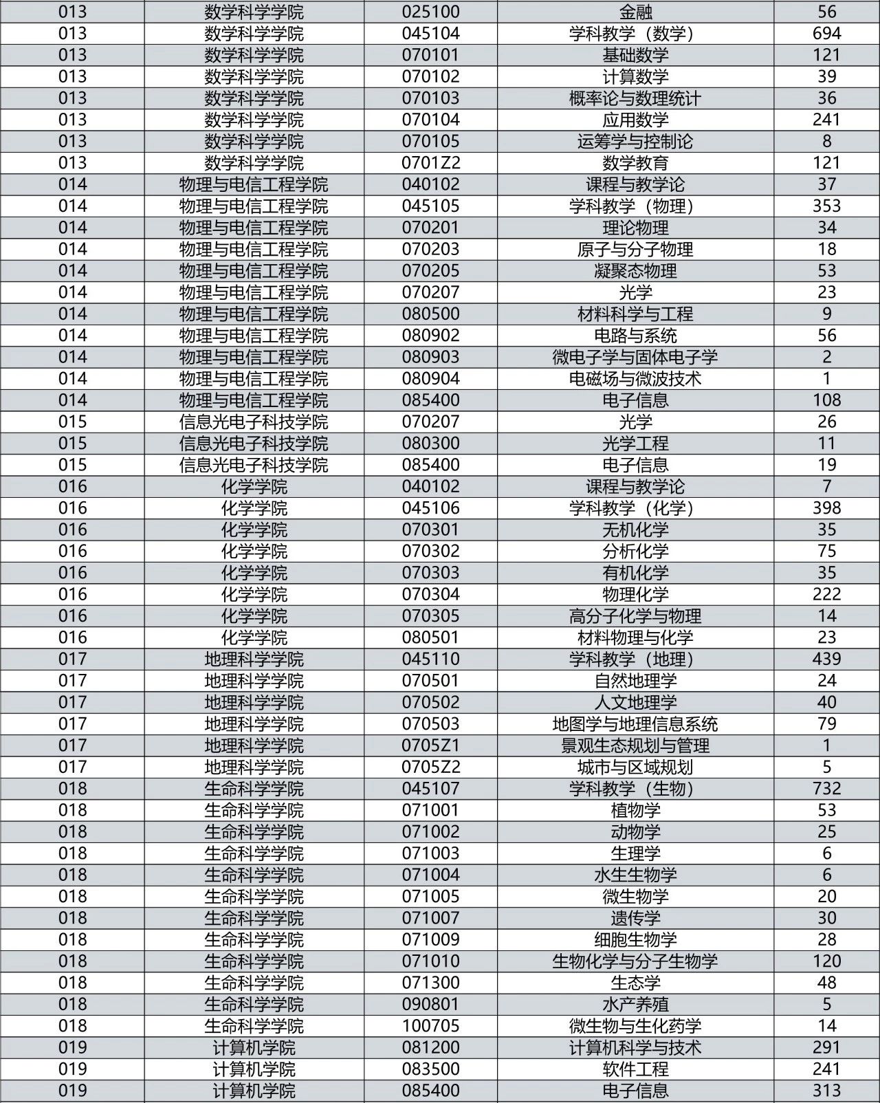 华师各专业报考详情