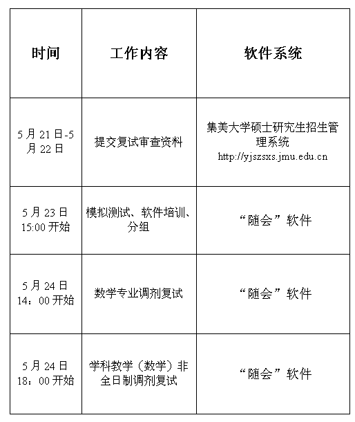 据悉,集美大学理学院2020年研究生招生调剂复试时间安排表已公布,聚创集美大学考研网小编整理如下: