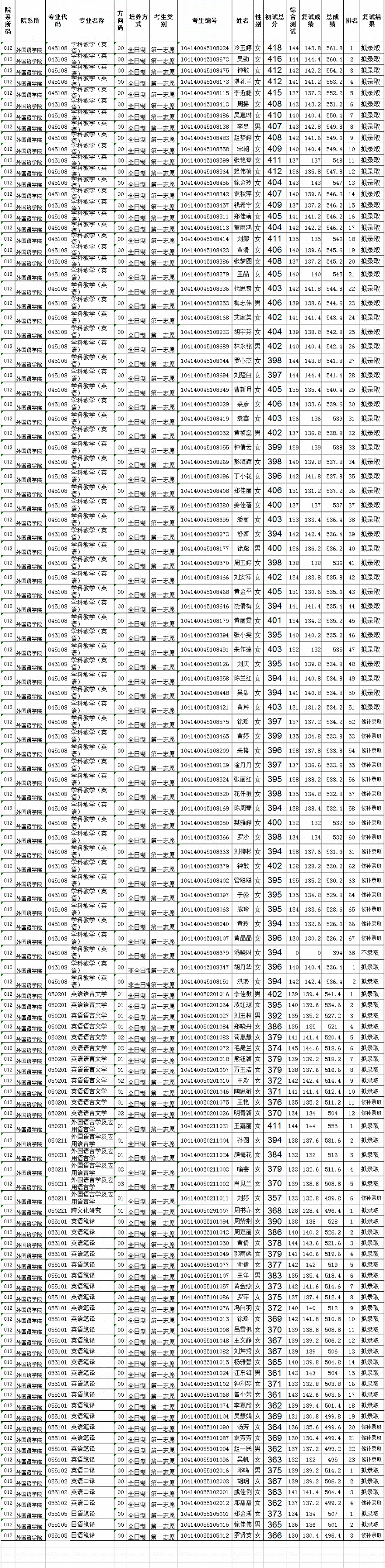 据悉,江西师范大学外语学院2020年硕士研究生复试结果已公布,聚创江西师范大学考研网为大家整理如下: