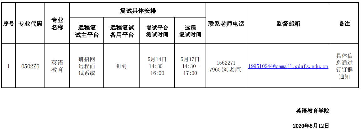 据悉,广东外语外贸大学英语教育学院2020年硕士研究生复试安排已公布,聚创广东外语外贸大学考研小编为大家整理如下:
