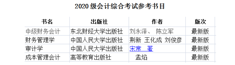 注:会计专业综合考试将严格按照全国会计硕士专业学位研究生入学考试复试阶段专业课指导性大纲http://www.mpacc.cn/displaynews.php?id=1348