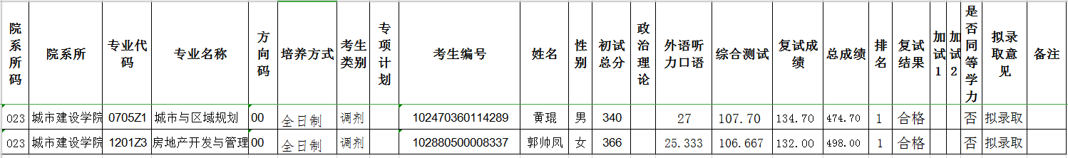 城市建设学院2020年硕士研究生调剂复试成绩公示
