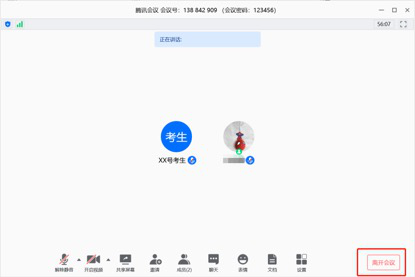 5.待监考员确认本考场所有答卷回收完毕后,通知结束考试,考生在主机位点击“离开会议”->结束考试。考试结束后不得与他人讨论笔试现场情况或向他人泄露笔试题目。