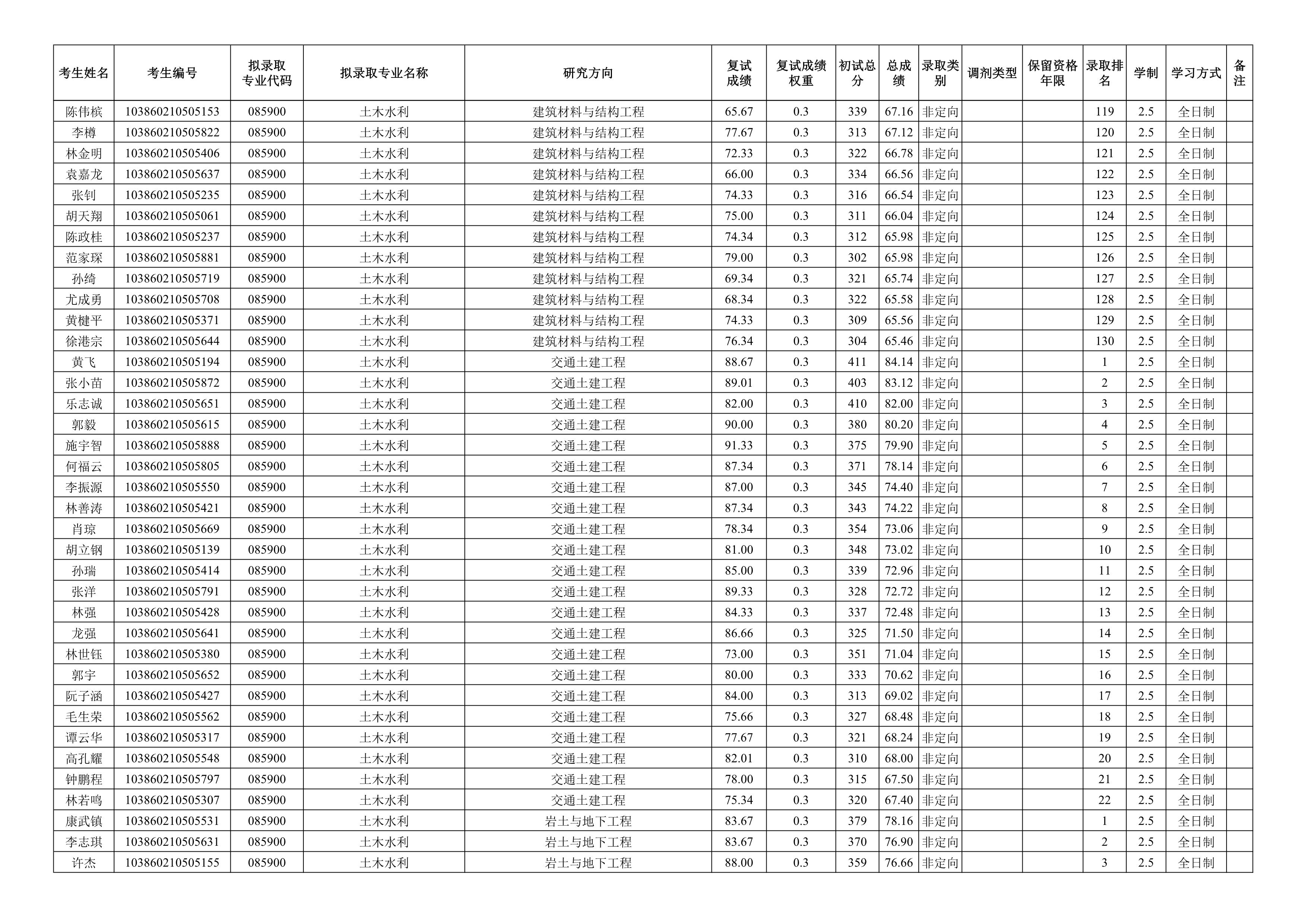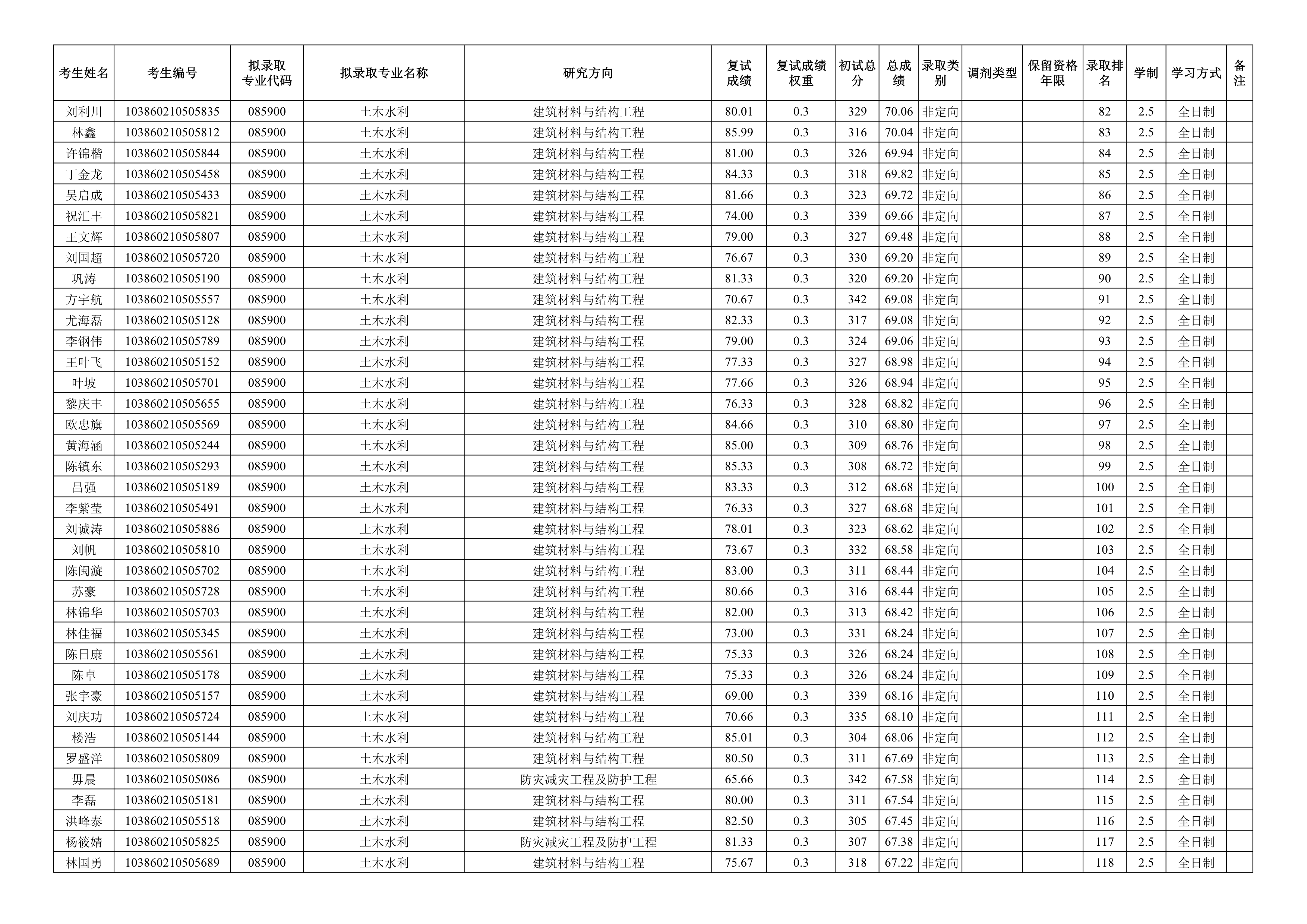 据悉,2020年福州大学土木工程学院硕士研究生拟录取名单公示已公布,聚创福州大学考研网小编为大家整理了相关信息