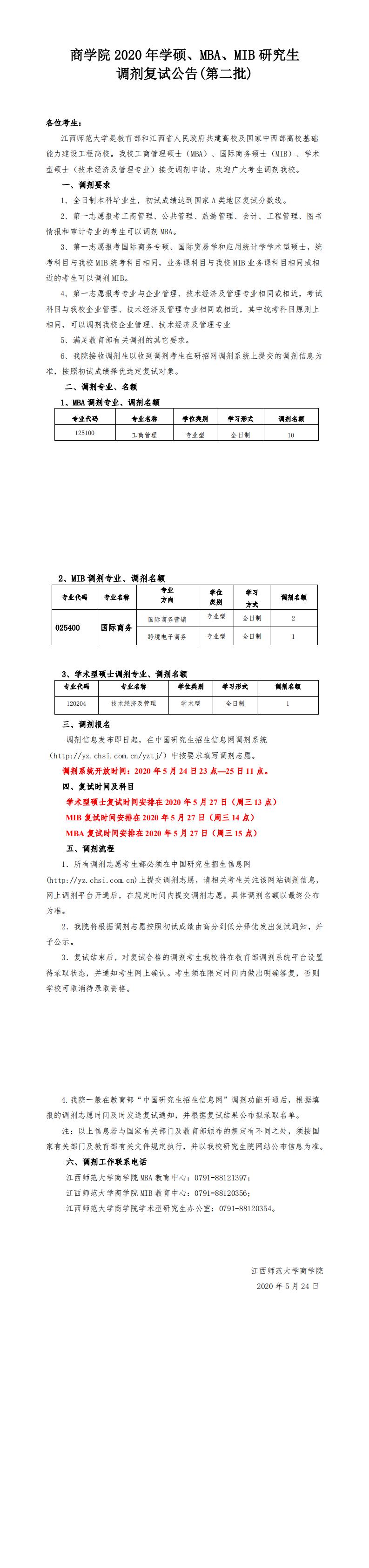 据悉,江西师范大学商学院2020年学硕调剂复试公告(五)已公布,聚创江西师范大学考研网为大家整理如下:
