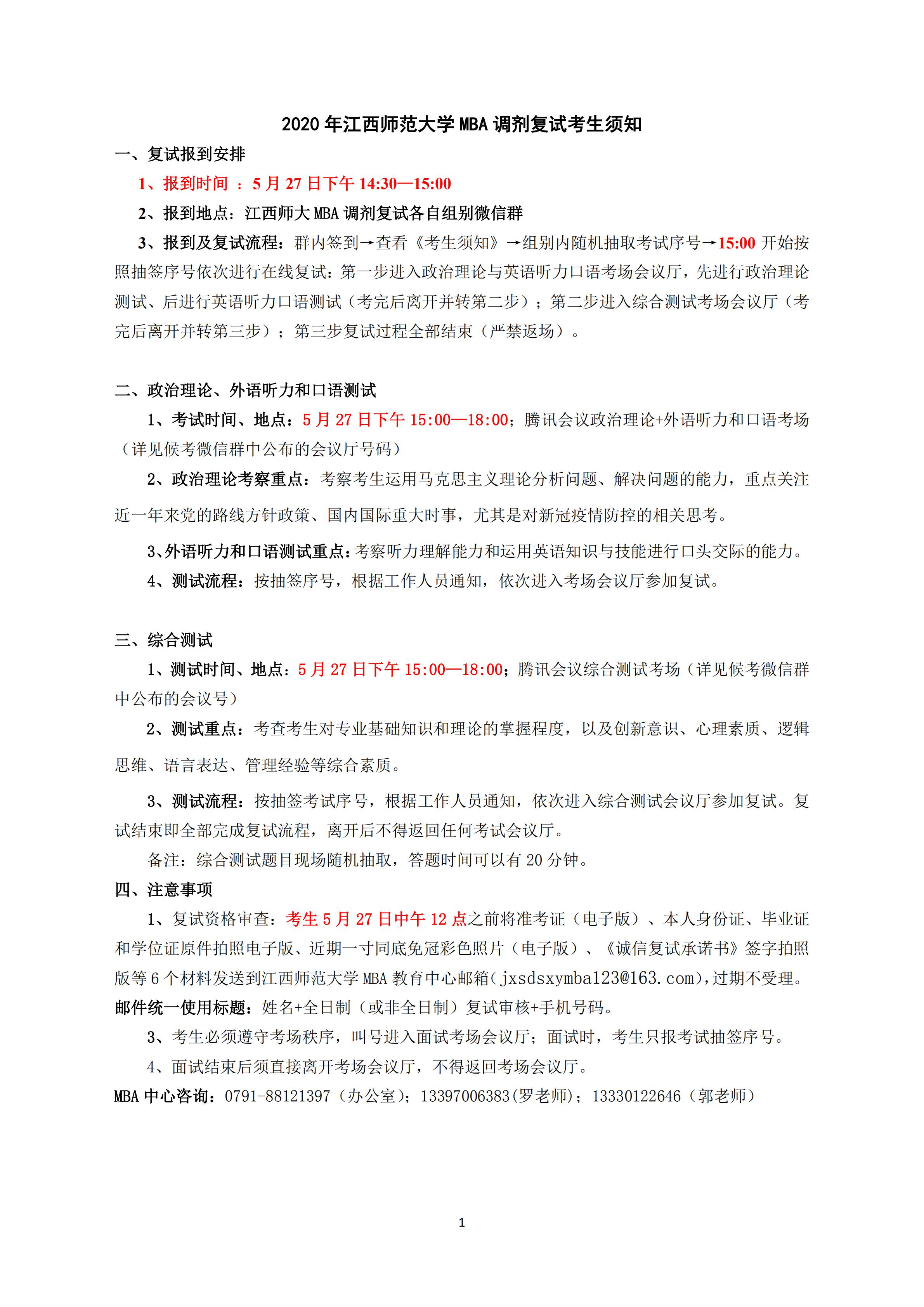 以上是聚创考研网为考生整理的"江西师范大学商学院2020年MBA调剂复试公告(七)"的相关考研信息,希望对大家考研备考有所帮助! 备考过程中如有疑问,也可以添加老师微信juchuang911进行咨询。
