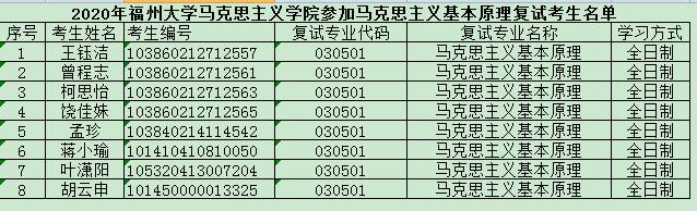 以上是聚创考研网为考生整理的"2020年福州大学马克思主义学院参加马克思主义基本原理复试考生名单"的相关考研信息,希望对大家考研备考有所帮助!