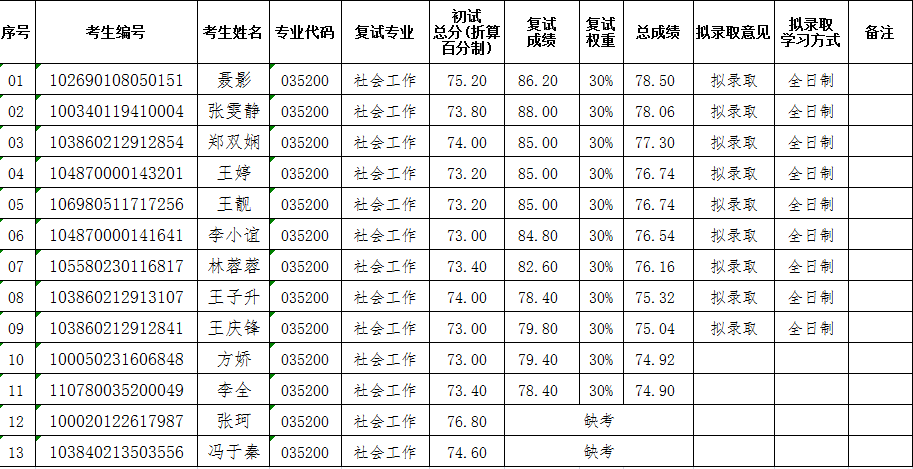 据悉,福建师范大学公共管理学院社会工作专业硕士研究生招生调剂复试结果公布已公布,聚创福建师范大学考研网小编为你整理如下内容:
