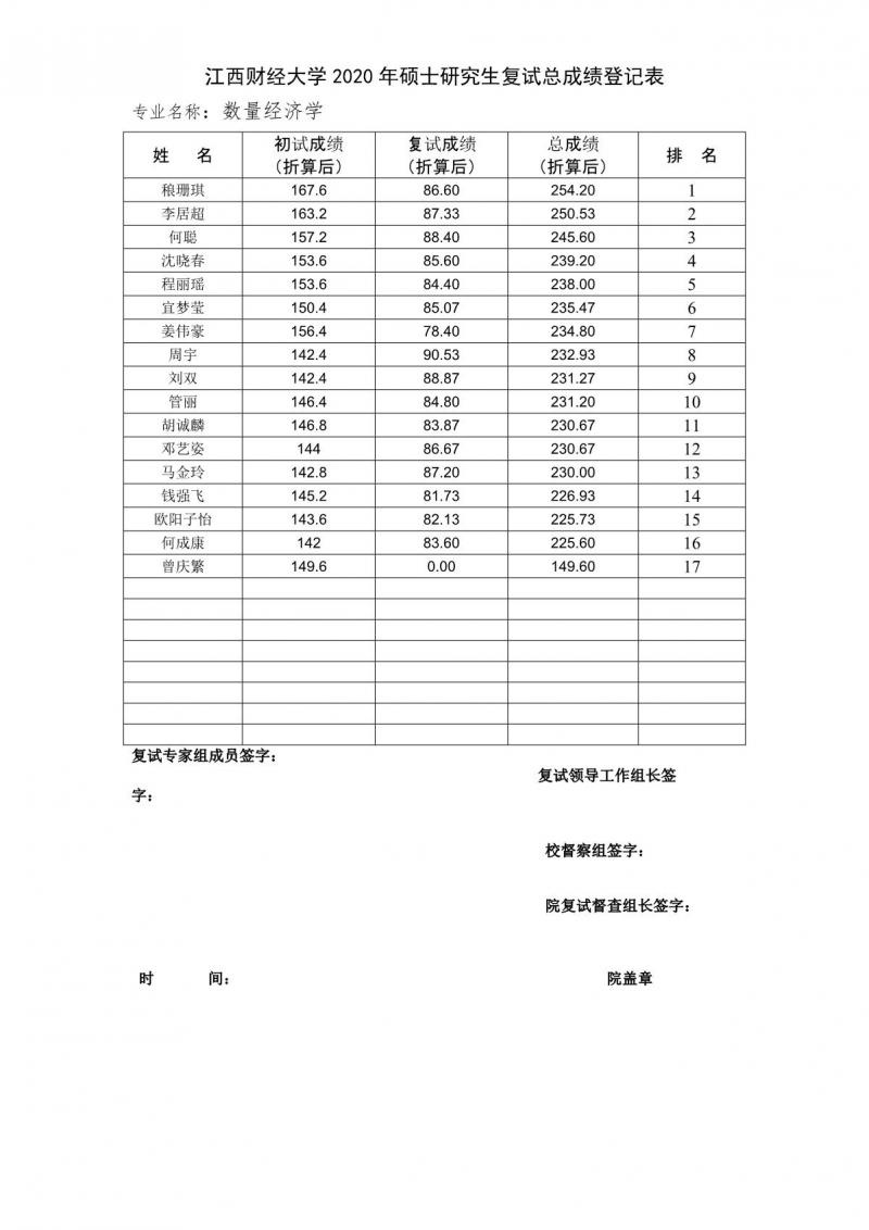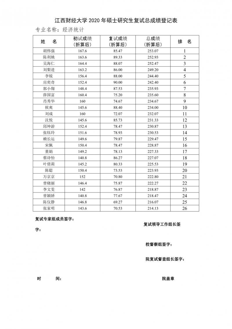 以上是聚创考研网为考生整理的"江西财经大学统计学院2020年统计学学硕的复试排名情况"的相关考研信息,希望对大家考研备考有所帮助! 备考过程中如有疑问,也可以添加老师微信juchuang911进行咨询。