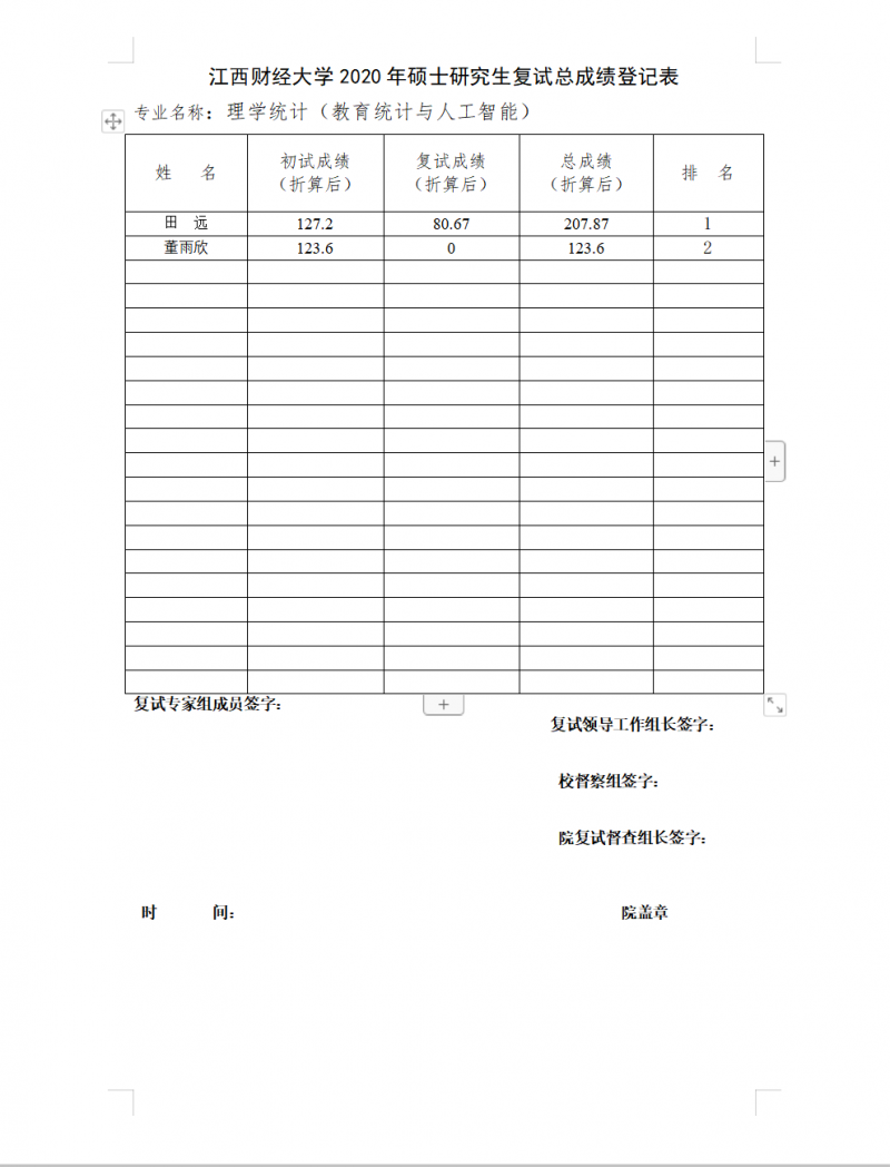 据悉,江西财经大学统计学院2020年统计学学硕的复试排名情况已公布,聚创江财考研小编为大家整理如下: