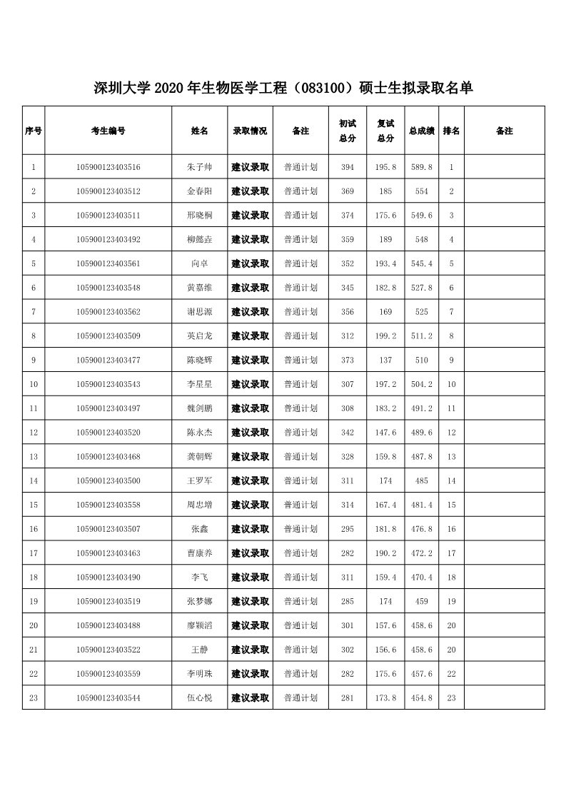以上是聚创考研网为考生整理的"深圳大学 2020 年生物医学工程(083100)硕士生拟录取名单"的相关考研信息,希望对大家考研备考有所帮助!