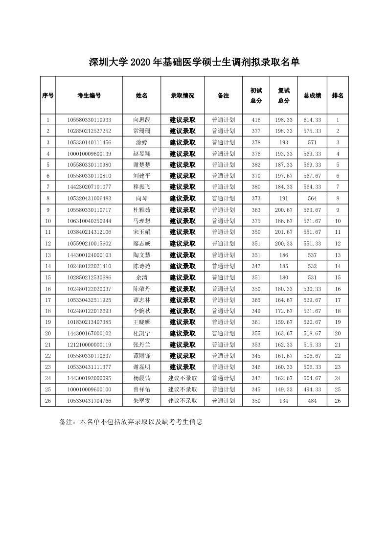 据悉,深圳大学2020年基础医学硕士生调剂拟录取名单已公布,聚创深圳大学考研网小编为你整理如下内容: