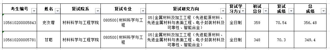 由于校内部分专业生源不足,学校对招生指标进行调整,我院080500材料科学与工程(金属材料及加工工程)专业增加两个学术型招生计划。根据我院《2020年硕士研究生复试工作实施方案》的相关录取原则,将在080500材料科学与工程(金属材料及加工工程)专业按照参加学院复试但是未被录取的考生总成绩从高到底排序顺序录取考生。