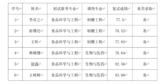 聚创华南理工大学考研网快讯,华南理工大学食品科学与工程学院2020年硕士研究生调剂(第二批) 拟录取名单公示,详情如下: