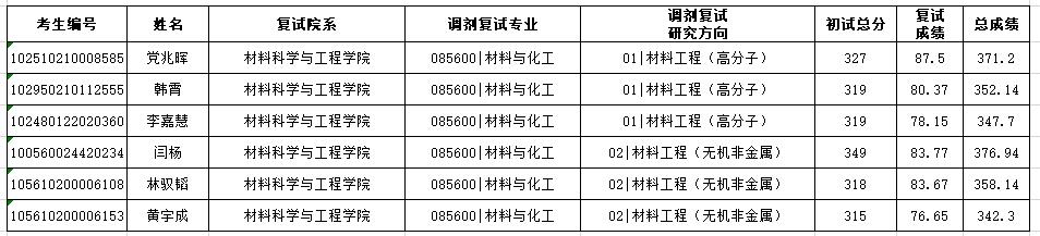 聚创华南理工大学考研网快讯,华南理工大学材料科学与工程学院材料与化工专业调剂生拟录取名单的通知,详情如下: