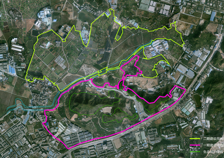 深圳校区校址平面图,黄线区域为2600亩农业科技园用地