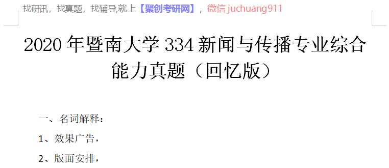 完整版请下载附件:2020年暨南大学334新闻与传播专业综合能力真题(回忆版)