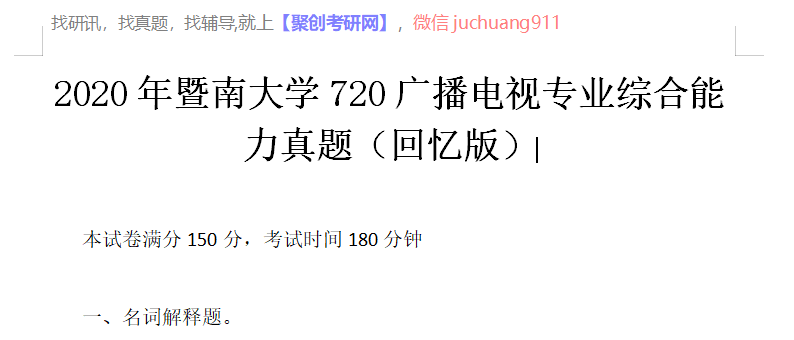 完整版请下载附件:2020年暨南大学720广播电视专业综合能力真题(回忆版)
