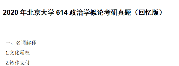 完整版请下载附件:2020年北京大学614政治学概论考研真题(回忆版)