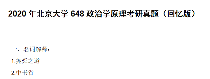 完整版请下载附件:2020年北京大学648政治学原理考研真题(回忆版).pdf