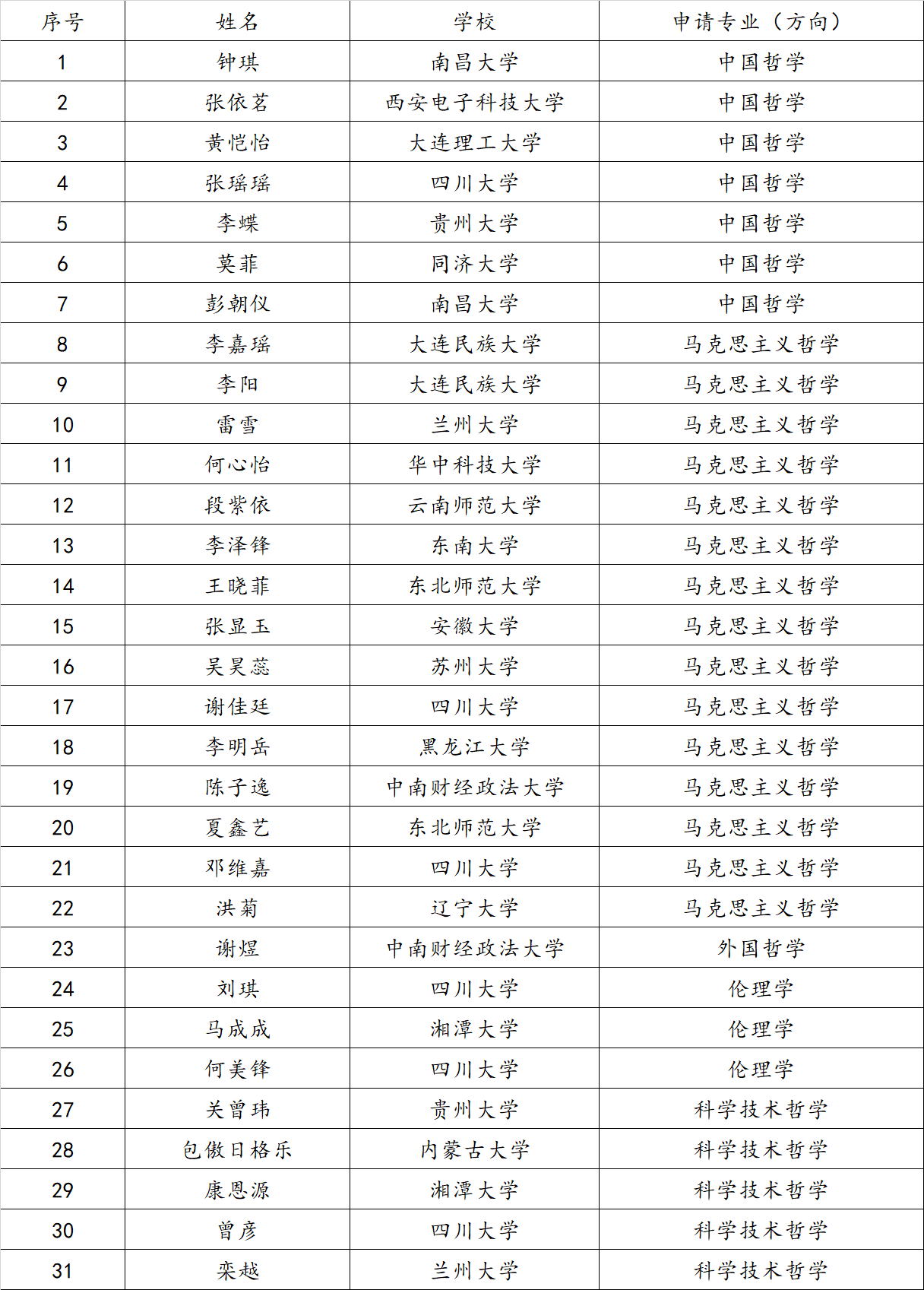 各位同学好,欢迎报名参加2020年四川大学哲学系优秀大学生暑期云夏令营!哲学系在收到各位同学报名材料的基础上,经各硕士点认真遴选,拟接收附件1中的31名同学入选本次云夏令营。
